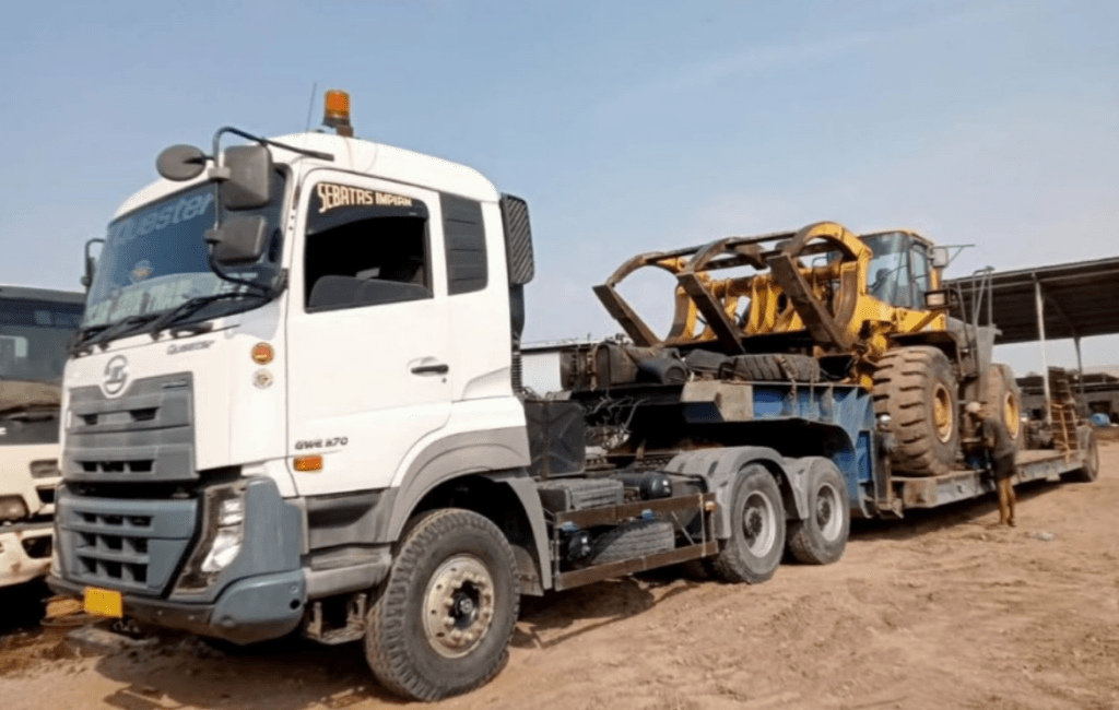 Pengiriman darat lanjutan dilakukan menggunakan armada yang disesuaikan dengan jenis dan ukuran alat berat, sehingga unit dapat sampai ke lokasi proyek dengan aman.